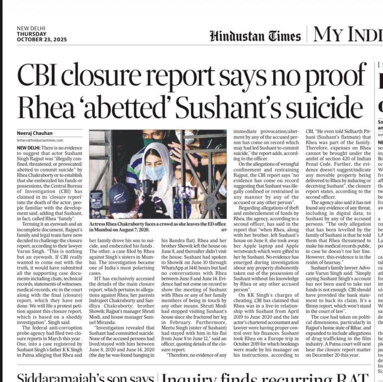 Varun Singh, the lawyer representing the family of the late actor, who was found dead in his Bandra flat on […]
