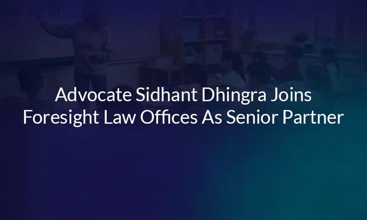 Advocate Sidhant Dhingra Joins Foresight Law Offices As Senior Partner