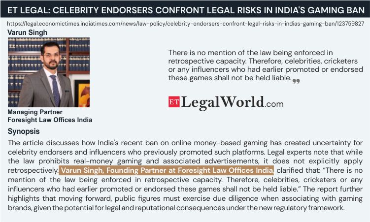 Celebrity endorsers confront legal risks in India’s gaming ban