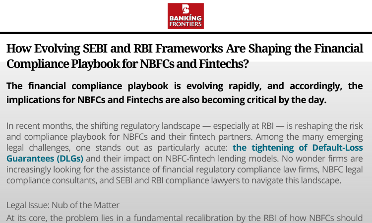 The article authored by Adv. Varun Singh, Founder & Managing Partner, Foresight Law Offices India explores how RBI’s tightened DLG norms are redefining compliance for NBFCs and fintech partnerships.